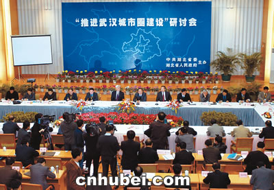 省及武漢市領(lǐng)導(dǎo)陳訓(xùn)秋、孫志剛、張昌爾、王守海、翁行德、李憲生出席會議。副省長劉友凡就加快武漢城市圈發(fā)展的基本思路作主題發(fā)言。