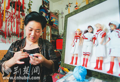 憨態(tài)可掬的企鵝令人喜愛(ài),亭亭玉立的美少女身著靚衣,精美的壁掛配有插花……這些精美的工藝品,都是用毛線編織出來(lái)的。昨日,記者走進(jìn)印迎春的家,被滿室琳瑯滿目的編織品看花了眼。