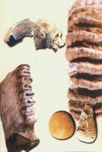 馬壩人頭骨化石:(左上)
