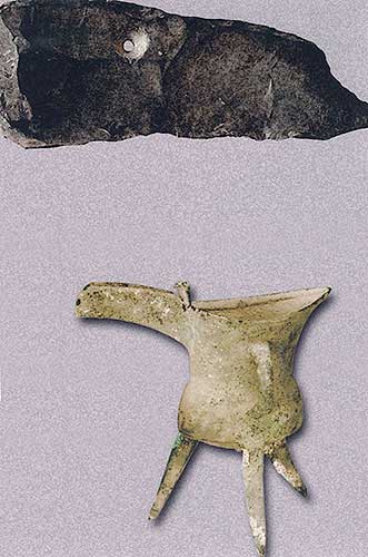 青銅爵:酒器(下,高12厘米)[相關(guān)鏈接]:20世紀(jì)中國(guó)百項(xiàng)考古大發(fā)現(xiàn)(1-20)21、大溪遺址(圖)22、城頭山遺址(圖)23、屈家?guī)X遺址(圖)24、崧澤遺址(圖)25、馬家窯遺址(圖)26、柳灣墓地(圖)27、牛河梁遺址(圖)28、城子崖遺址(圖)29、良渚文化遺址群(圖)30、石家河遺址群(圖)31、陶寺遺址(圖) 32、王城崗遺址(圖)33、齊家坪遺址(圖)34、卡若遺址(圖)35、石峽遺址(圖) 36、東灣仔北遺址(圖)37、圓山遺址(圖)38、二里頭遺址(圖)39、東下馮遺址(圖)40、夏家店遺址(圖)