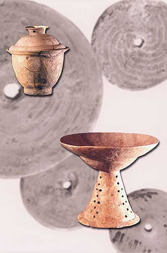 陶紡輪:紡織工具(背景,最小者直徑3.5厘米)