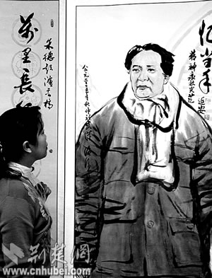 昨日,一名青年在一幅題為《憶當(dāng)年·延安》的畫前駐足觀賞。今年是中國工農(nóng)紅軍長征勝利到達陜北70周年,武漢市江漢區(qū)特舉辦書畫展,繼承革命光榮傳統(tǒng),弘揚延安精神。