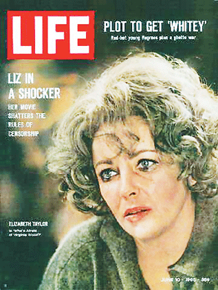 1966年,《LIFE》封面上蒼老憔悴的泰勒嚇了讀者一跳。細(xì)看才知道這是她演《誰(shuí)害怕弗吉尼亞·伍爾芙》的造型,這部電影后來(lái)再次將泰勒送上了奧斯卡影后的寶座。