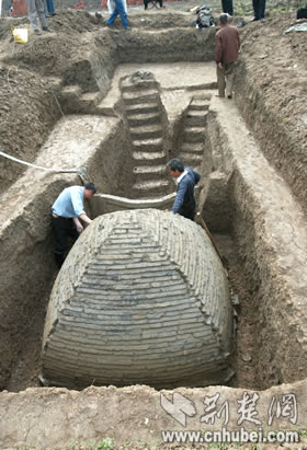 荊楚網(wǎng)消息(楚天都市報(bào))(記者沈秋 通訊員王道文 楊力)昨日,襄樊市考古隊(duì)在高新區(qū)一工地發(fā)現(xiàn)一處宋代墓群,其中一座仿木式穹隆頂雙墓道宋代古墓保存完整,為該市少見。