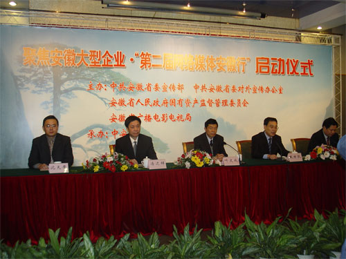 本次活動主題為“聚焦安徽大型企業(yè)”,主要圍繞安徽省加快工業(yè)化進程進行報道,展示安徽奮力崛起、奮發(fā)有為的新形象。已來皖的37家媒體中,有人民網(wǎng)、新華網(wǎng)等9家中央重點網(wǎng)站,一批知名省、市重點新聞網(wǎng)站,具有新聞資格的知名商業(yè)網(wǎng)站、以及本省內(nèi)新聞網(wǎng)站。