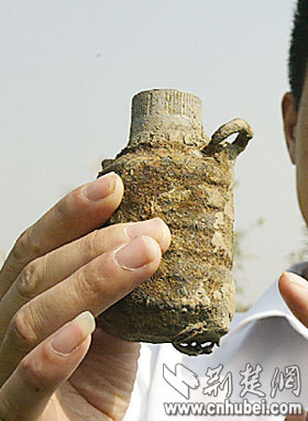 昨日上午9時(shí)30分,康先生在漢口江灘岸邊沙地上散步時(shí),發(fā)現(xiàn)一個(gè)手雷。這個(gè)手雷直徑約5厘米,高約7厘米,銹跡斑斑,尚未引爆。據(jù)分析,這可能是日本侵略武漢時(shí)留下來(lái)的,民警隨后將它帶走。荊楚網(wǎng)楚天都市報(bào)記者劉中燦 張皓 實(shí)習(xí)生曾莉張鈺