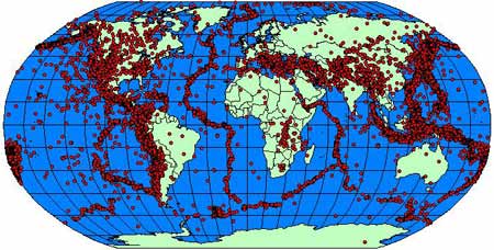 1995-2001年全球4級以上地震震中分布圖