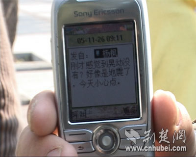 8點50分左右,記者在辦公室看到水杯、窗戶等都有明顯震動。隨后,辦公室熱線電話響個不停。家住武昌、漢口、青山、漢陽等地數(shù)十位網友紛紛來電,均稱有明顯震感。鄂州城區(qū)維新路的王先生、洪湖建行大廈八樓的汪女士也致電本網,稱當?shù)赜姓鸶小?/P>