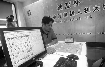 中國象棋特級大師柳大華在與計算機的對弈中。(新華社發(fā))