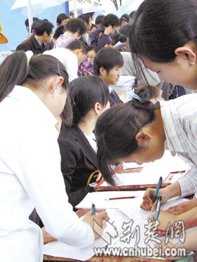 與此同時(shí),全省各地設(shè)立的120多個(gè)分會(huì)場(chǎng),為約50萬(wàn)農(nóng)民工提供了崗位招聘、政策咨詢(xún)等服務(wù)。全省4000多個(gè)職業(yè)技能鑒定考場(chǎng)也于昨日開(kāi)考,為12萬(wàn)名農(nóng)民工進(jìn)行了電焊工、電工、計(jì)算機(jī)、服裝裁剪、鋼筋工等100多個(gè)工種的技能鑒定。