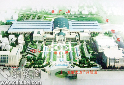 漢口火車站將建設(shè)南北兩個(gè)廣場(chǎng)。面積分別為9.24公頃、3公頃。配套道路包括,打通車站東側(cè)金墩路,下穿鐵路線后連通北廣場(chǎng),向北延伸至常青一路、紅旗渠路等;發(fā)展大道改為下穿隧道;西側(cè)建設(shè)下穿鐵路的銀墩路,連通北廣場(chǎng)。站前廣場(chǎng)西側(cè)布置地鐵2號(hào)線漢口火車站站,以及公交樞紐站等。據(jù)估算,整個(gè)市政配套工程總投資約14億元,計(jì)劃2008年6月完成。