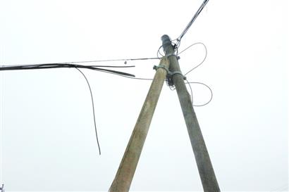 被割斷的電纜懸在空中
