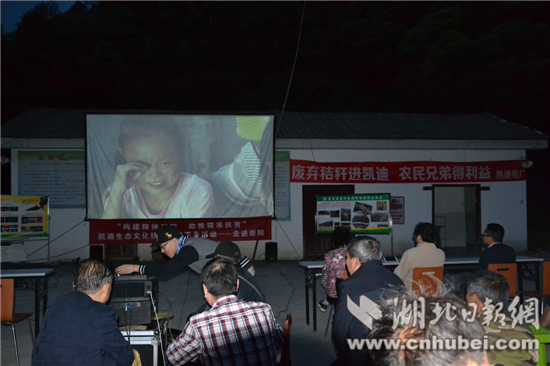 當(dāng)晚,在電影開(kāi)始前播放了由陽(yáng)光凱迪新能源集團(tuán)提供的秸桿回收與利用宣傳片,讓農(nóng)民朋友了解產(chǎn)業(yè)開(kāi)發(fā)“變廢為寶”帶來(lái)的收益,播放了由赤壁市普法工作辦公室拍攝制作的《留守兒童》公益廣告片和邵陽(yáng)花鼓戲《兒大女大》,現(xiàn)場(chǎng)還發(fā)放了由省扶貧辦編印的《扶貧到戶,畫(huà)說(shuō)政策》宣傳手冊(cè)、秸桿回收利用好處多等資料,讓廣大農(nóng)民群眾進(jìn)一步了解黨和政府的扶貧政策,真正享受到政策的好處。電影下鄉(xiāng)活動(dòng)猶如一道文化大餐,不僅給群眾送去歡樂(lè),而且還豐富了人民群眾的業(yè)余文化生活。
