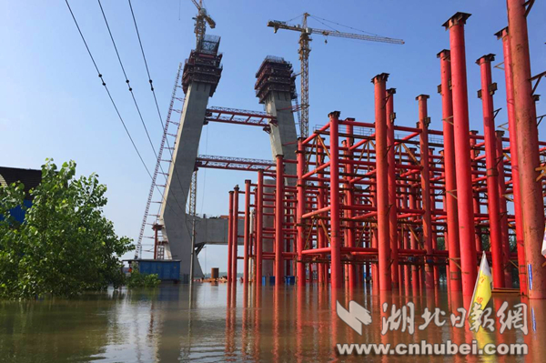 7月1日,項(xiàng)目建設(shè)指揮部緊急趕赴洪湖市北岸主塔作業(yè)區(qū),組織工地民工對(duì)工區(qū)鋼管樁、拌合場(chǎng)等地進(jìn)行加固,現(xiàn)場(chǎng)指揮撤離200多位民工及管理人員,并安全轉(zhuǎn)移上萬(wàn)噸物資。