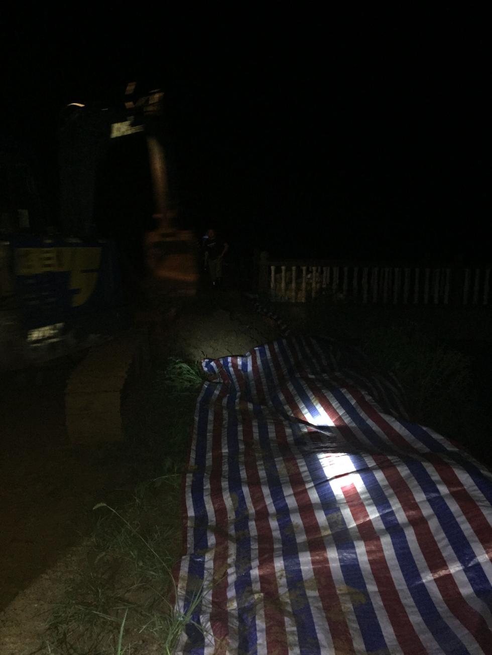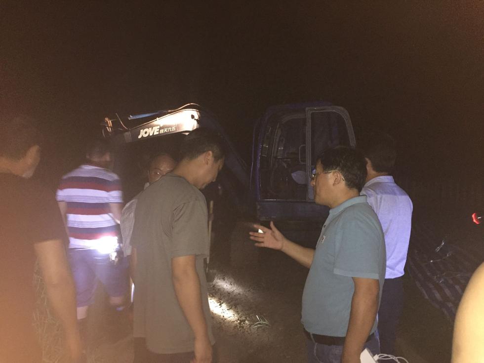 險情就是命令,雙溪橋鎮(zhèn)迅速啟動防汛緊急預(yù)案,組織了40余人的搶險隊伍,由鎮(zhèn)長劉志廣帶隊趕赴現(xiàn)場,并就近調(diào)配了一臺挖掘機進行支援。