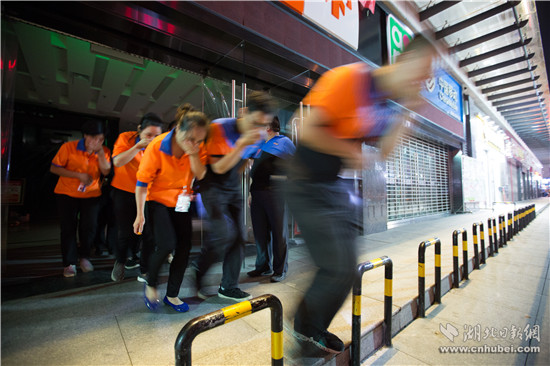 晚8時(shí),通城縣建筑體量最大的城市綜合體——三合中百購(gòu)物廣場(chǎng)內(nèi),燈火通明,熙熙攘攘。忽然,警鈴大作。廣場(chǎng)因電線短路發(fā)生“火災(zāi)”,火勢(shì)迅速蔓延,大量人員被困。警情就是命令。廣場(chǎng)內(nèi)4個(gè)微型消防站立即按照預(yù)案,疏散廣場(chǎng)內(nèi)部人員,并啟動(dòng)固定消防設(shè)施,阻止火勢(shì)蔓延。