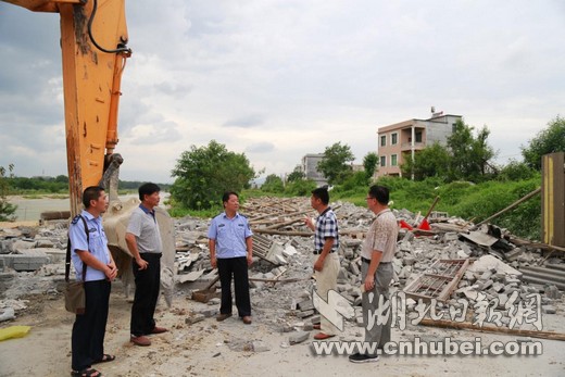 監(jiān)管人員依法拆除通城某存在環(huán)保隱患的養(yǎng)豬場