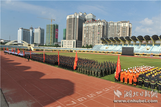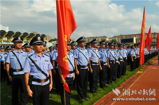 精彩的實(shí)戰(zhàn)演練過(guò)后,14個(gè)方陣民警又進(jìn)行了集體宣誓,誓言牢記使命、忠誠(chéng)履職、全力以赴,確保咸寧社會(huì)治安大局的持續(xù)穩(wěn)定,喜迎黨的十九大勝利召開。