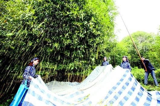 圖為:昨日,村民在一棵百年古桂樹(shù)下打桂花。當(dāng)天,“中國(guó)香谷桂花小鎮(zhèn)”桂花旅游節(jié)在咸寧市咸安區(qū)桂花源景區(qū)開(kāi)幕。桂花源風(fēng)景區(qū)是全國(guó)最大的古桂群基地,樹(shù)齡50年到100年的桂樹(shù)達(dá) 2000余株,百年以上古桂樹(shù)有200余株。游客們穿行在馨香四溢的桂樹(shù)林里,一邊欣賞美景,一邊體驗(yàn)打桂花的樂(lè)趣。