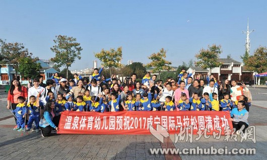 湖北日?qǐng)?bào)網(wǎng)訊(全媒體記者張文龍、通訊員盤麗娟)28日,2017金盛蘭杯咸寧國(guó)際溫泉馬拉松公益親子徒步活動(dòng)在咸寧十六潭公園舉行?;顒?dòng)主題為“潔凈咸寧 向愛奔跑”,吸引了50個(gè)家庭約125人參加,其中年齡最小者僅4歲。