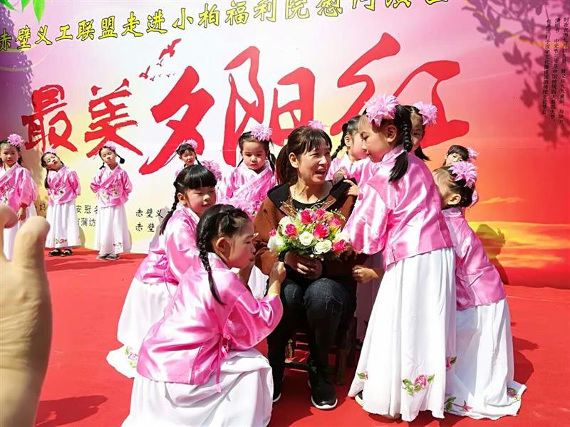 湖北日?qǐng)?bào)網(wǎng)訊(全媒體記者張文龍、通訊員黃柱、張海燕)“因?yàn)槲覀兪且患胰耍嘤H相愛(ài)的一家人……”10月28日,在赤壁市赤壁鎮(zhèn)小柏村福利院,《相親相愛(ài)一家人》的歌聲響徹天際。當(dāng)天,農(nóng)歷九月初九,是我國(guó)傳統(tǒng)節(jié)日重陽(yáng)節(jié),來(lái)自蒲紡歌舞團(tuán)、赤壁中醫(yī)院、蘭心惠質(zhì)旗袍群、赤壁市機(jī)關(guān)幼兒園等單位的志愿者,相約來(lái)到福利院,陪58位老人歡度佳節(jié)。