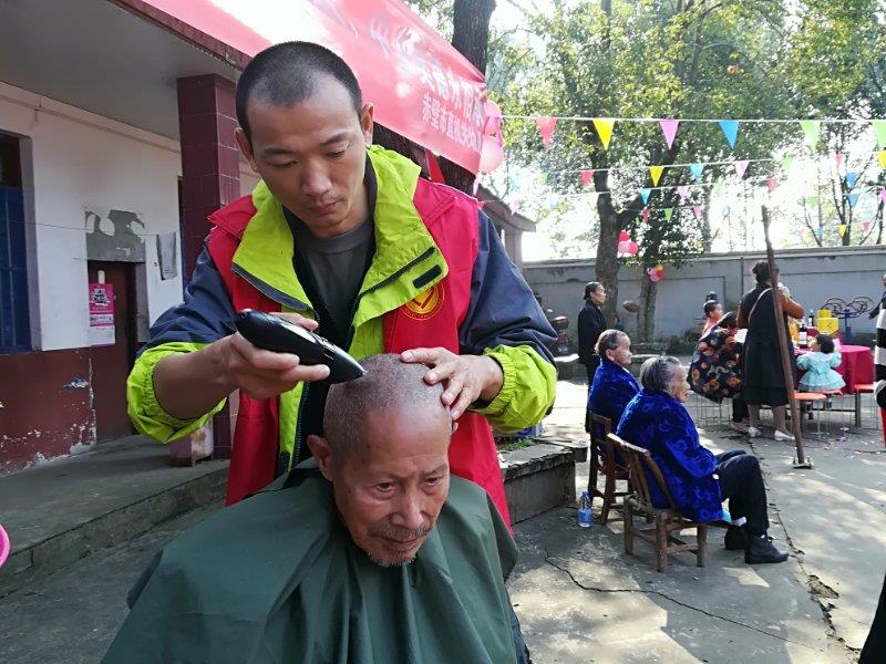 當(dāng)天上午8時(shí),志愿者們走進(jìn)福利院。一下子來(lái)這么多人,老人們高興得合不攏嘴。拉完家常,志愿者們開(kāi)始分工做服務(wù),有搭舞臺(tái)的,有準(zhǔn)備食材做菜、做飯、包餃子的、有擺桌椅板凳的、有分配水果零食的、有為老人理發(fā)、按摩、修指甲的、中醫(yī)院的護(hù)士免費(fèi)給老人做體檢、小朋友為老人端茶等。