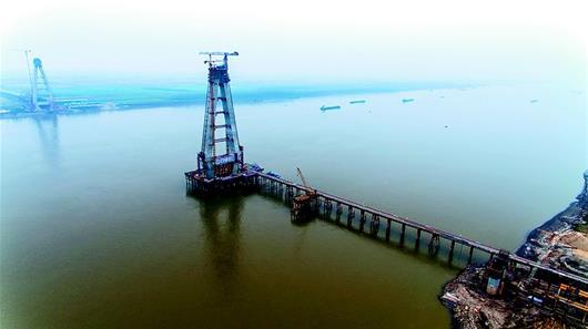 湖北日?qǐng)?bào)訊 12月4日,正在建設(shè)中的嘉魚(yú)長(zhǎng)江公路大橋南北主塔分別達(dá)到164米、158米,相當(dāng)于50多層樓高。大橋建設(shè)者開(kāi)展勞動(dòng)競(jìng)賽,力爭(zhēng)在2018年春節(jié)前完成主塔封頂。咸寧市擁有128公里長(zhǎng)江岸線(xiàn)卻沒(méi)有一座長(zhǎng)江大橋,嘉魚(yú)長(zhǎng)江公路大橋2019年底建成通車(chē)后,將終結(jié)咸寧無(wú)長(zhǎng)江大橋的歷史。 (湖北日?qǐng)?bào)全媒記者 陳勇 通訊員 周漓 攝)