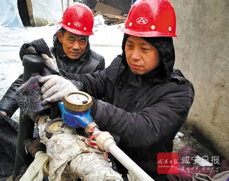 1月初,該公司投入35萬元購買防凍棉、黃沙等防凍物資,投入人力600余人次,對城區(qū)及向陽湖、賀勝橋、咸嘉新城等農(nóng)村戶外水表水管進(jìn)行了包裹,為 41500塊戶外水表和2600處水管穿上“防凍衣”防止 水表水管“凍傷”。29日,室外氣溫低至-6℃,部分老舊小區(qū)的室外水管冰堵無水,水表被凍爆漏水。接到消息后,公司搶修人員迅速行動,爬梯登高,蹚雪化冰,更換水表。