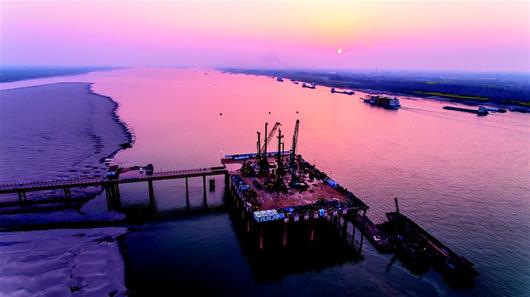 湖北日報訊 圖為:赤壁長江大橋進入全面施工。(湖北日報全媒記者 陳勇 通訊員 馬海斌 攝)