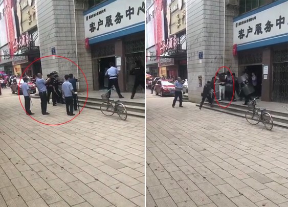 據(jù)現(xiàn)場視頻顯示,多名警務人員持警械將自來水公司客戶服務中心圍住,現(xiàn)場叫喊聲嘈雜。雙方在對峙后,一名警察連續(xù)向店內(nèi)射擊3次,隨后其余警務人員持鋼叉及盾牌上前,經(jīng)短暫搏斗后,將一名男子帶出。嫌疑人被帶出時,依舊能夠站立走動。