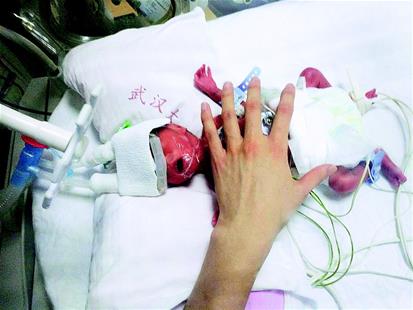 當(dāng)晚,圓圓降生??伤挥谐扇税驼拼笮?,體重810克,身長32厘米,屬于“超低出生體重兒”“超早產(chǎn)兒”。她的皮膚呈青灰色,沒有呼吸和反應(yīng),只有不規(guī)則的、微弱的心跳。