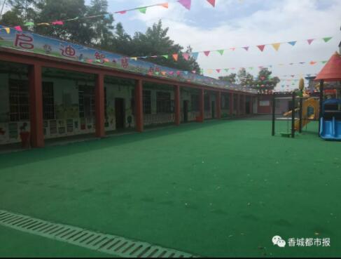 17日上午,記者來到該校,學(xué)校和幼兒園已經(jīng)放學(xué),記者進入校園后,感到異味撲鼻,新鋪的瀝青操場和塑膠地板顯得很氣派。