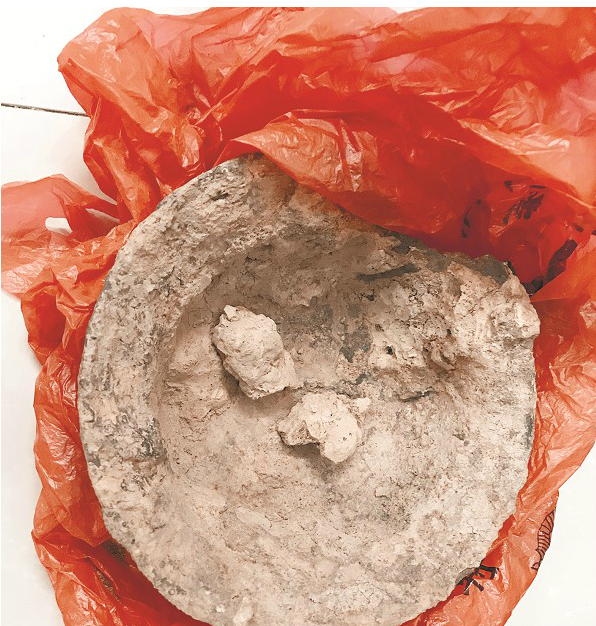 孫師傅說(shuō),當(dāng)村民趕過(guò)去的時(shí)候,墓穴已被挖開(kāi),不少周邊村民都前來(lái)圍觀,有人還在墓穴周圍找到了一些銅錢。他們當(dāng)即報(bào)警,當(dāng)日下午,崇陽(yáng)縣博物館館長(zhǎng)匡文、金塘派出所刑偵人員趕到現(xiàn)場(chǎng)進(jìn)行了勘查。據(jù)目擊村民介紹,盜挖古墓的是該村的宋某和退休人員盧某,共挖出了6件文物。當(dāng)天,在警方調(diào)查時(shí),宋某交出了一個(gè)破罐、一個(gè)鐵器等物件。