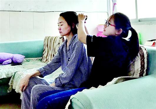 王渝玥原計(jì)劃跟同學(xué)開(kāi)暑期培訓(xùn)班,這樣可給媽媽掙點(diǎn)藥費(fèi),但沒(méi)想到媽媽病情惡化,她只好放棄開(kāi)班的想法全身心陪護(hù)母親。從沒(méi)干過(guò)家務(wù)的她,拿起了拖把拖地,學(xué)會(huì)了簡(jiǎn)單做飯,每天幫母親洗澡,扶著母親上下床、上衛(wèi)生間?!吧洗髮W(xué)的日子越來(lái)越近,我要好好陪媽媽,她已沒(méi)法陪我一起去北京了……”王渝玥說(shuō)到這里淚如雨下。