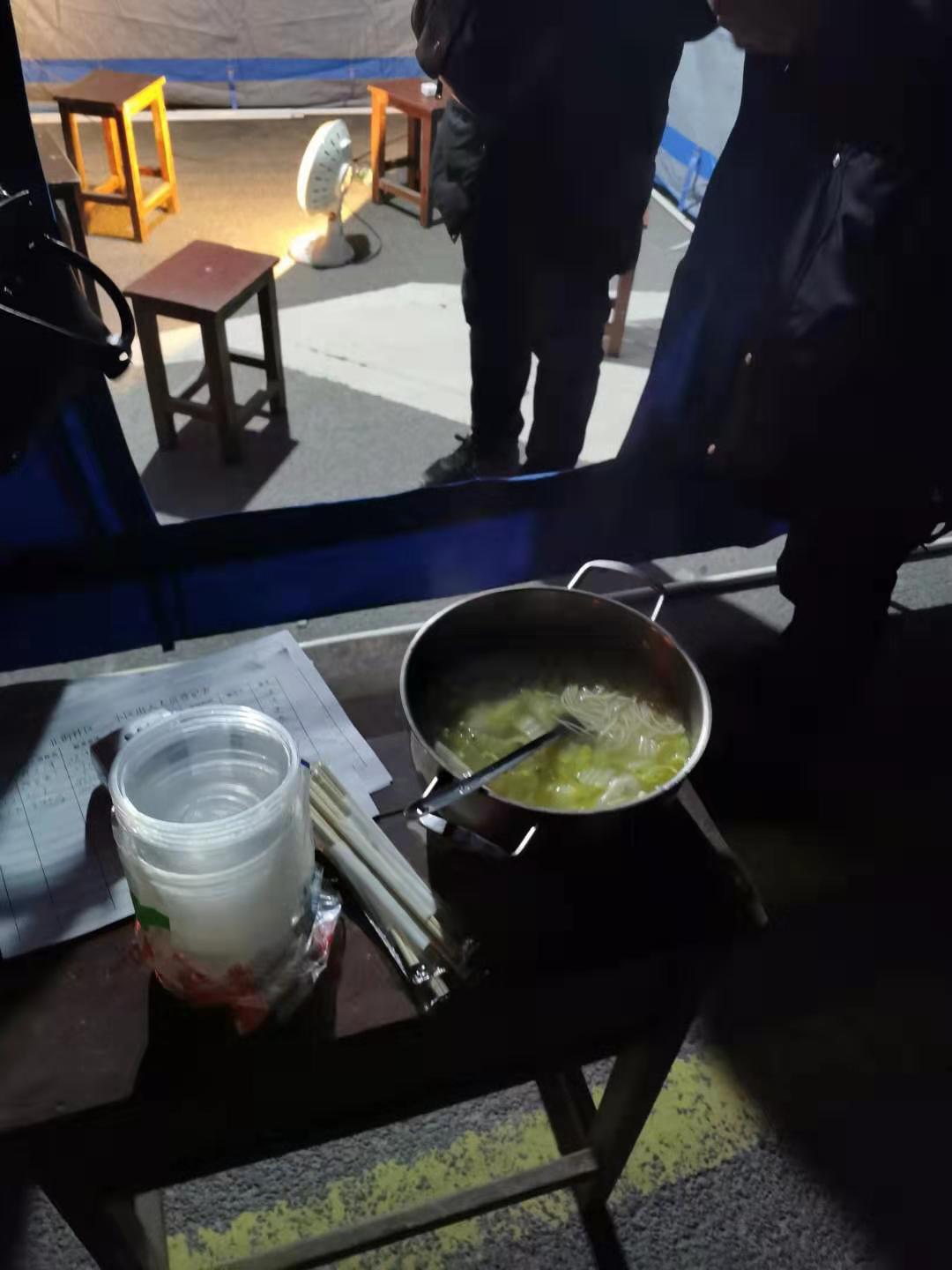 這是一位干警的妻子為他送來的面條,家里沒什么菜了,只放了幾片白菜葉子,但在這寒冷的夜里卻勝過一切珍饈。通宵達(dá)旦地值守,深入一線的排查接觸,家人的理解和支持是他們背后強(qiáng)大的力量,這份力量讓他們沒有后顧之憂,只管向前,再向前!