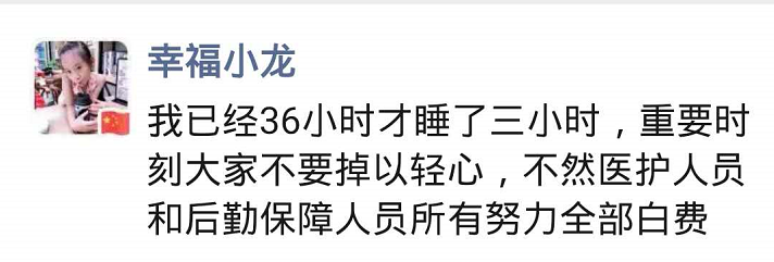 年邁母親患病在家,只能托付十三歲的孩子陪伴照顧。自抽調(diào)隔離七區(qū)工作后,市人民醫(yī)院醫(yī)生陳衛(wèi)東已半個(gè)多月不曾回家。他在朋友圈里寫(xiě)道:“我們不能回家,是為了讓更多的人能早日平安回家”。