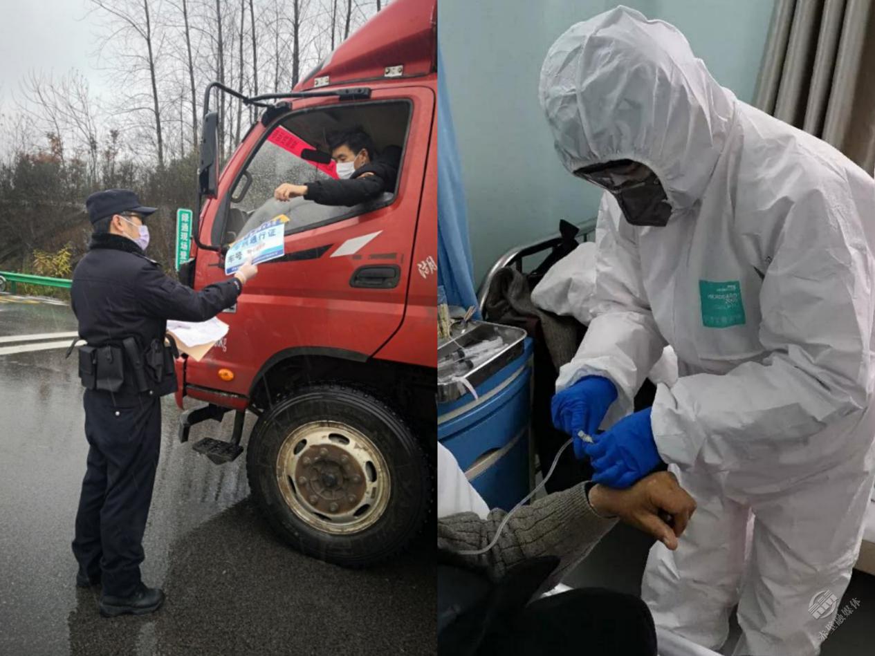 陳又喜說,“我是參加過03年非典防控的老民警,這個(gè)時(shí)候我不上誰(shuí)上?”一接通知,他與妻子陳少麗迅速?gòu)耐ㄉ嚼霞亿s回赤壁,立馬投身各自值守工作。
