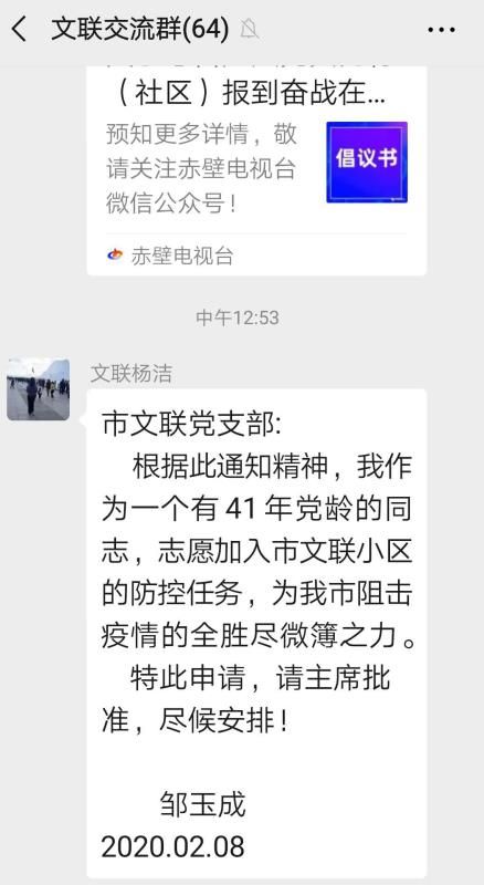 2月8日晚,他從媒體上看到,赤壁市委組織部發(fā)出倡議書,號(hào)召廣大黨員向村(社區(qū))報(bào)到,奮戰(zhàn)防疫一線。從字里行間,他感受到抗疫形勢(shì)的嚴(yán)峻,再次寫下請(qǐng)戰(zhàn)書。