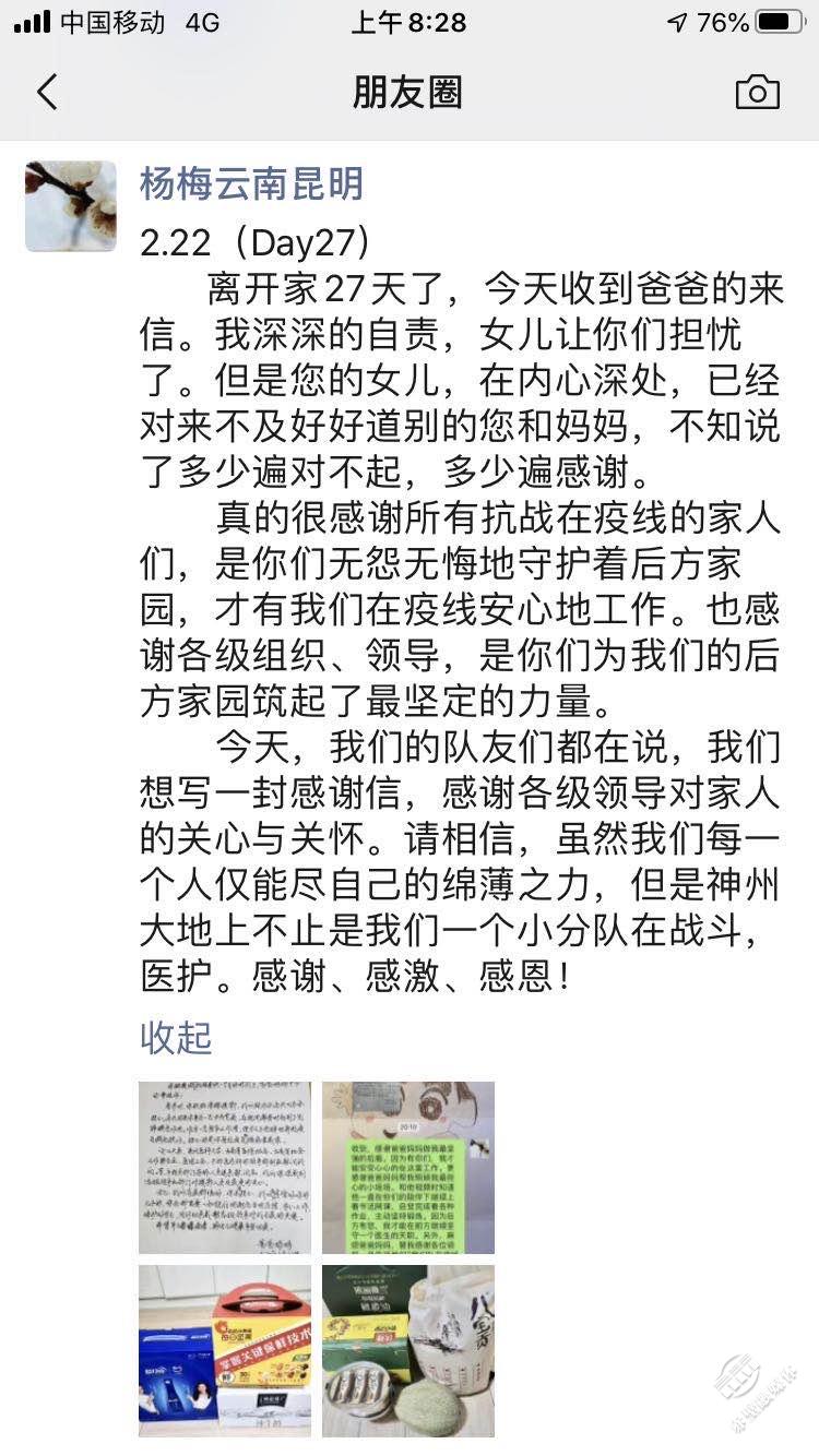 今天,我們的隊友們都在說,我們想寫一封感謝信,感謝各級領導對家人的關心與關懷。請相信,雖然我們每一個人僅能盡自己的綿薄之力,但是神州大地上不止是我們一個醫(yī)護小分隊在戰(zhàn)斗。感謝、感激、感恩!