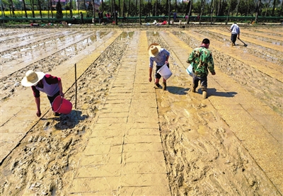 3月18日,咸安區(qū)俊敏種植專業(yè)合作社的社員們正忙著鋪秧盤、撒谷種。日前隨著氣溫回升,在做好新冠肺炎疫情防控的基礎上,咸安區(qū)搶抓農時開展早稻春播生產(chǎn),組織當?shù)厮膫€專業(yè)合作社搭建中型水稻集中育秧基地2個、小型水稻集中育秧基地2個,通過規(guī)模化、標準化集中育秧提高種植效率,為村民提供水稻集中育秧和機械化插秧一條龍托管服務,助力當?shù)剞r民早稻春播。