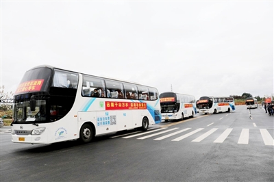 按照“點(diǎn)對(duì)點(diǎn)、一站式”要求,每輛大巴車就座率不超過50%,每隔一個(gè)座位坐一名乘客,每車配備2名司機(jī),確保車輛在指定時(shí)間到達(dá)指定地點(diǎn),實(shí)現(xiàn)“出門上車、下車到廠”,過程無縫銜接,確保務(wù)工人員平安出行、安全到崗。