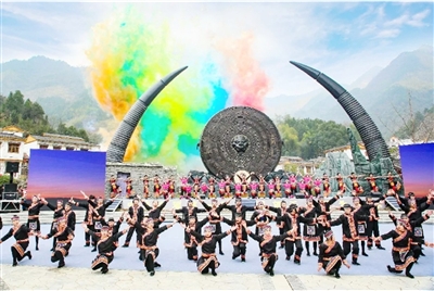 瑤祖故里大觀園內(nèi),古瑤壘石門樓,蘊天地靈氣,攬關(guān)山萬重。天然青石壘砌的梯形門樓,古色古香,錯落有致。