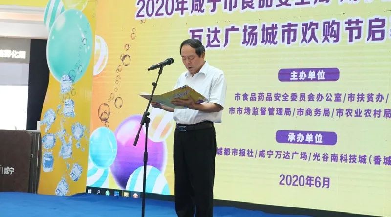 6月18日上午,在咸寧萬達(dá)萬達(dá)廣場舉辦“食品安全周,扶貧產(chǎn)品進(jìn)商超”啟幕儀式,市政府副市長吳剛,市政協(xié)副主席尤晉,市政府副秘書長廖朝輝出席活動(dòng)。