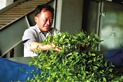 在軍營鑄就了永不服輸精神的吳海燕,近處請不到人,他就開著車去遠(yuǎn)處請人,中午給他們安排飯,晚上送他們回家,工資日結(jié)。“家門口管理茶園,不僅一個月有3600塊錢收入,還照顧了父母和孩子?!必毨魠墙膽迅屑ぁ?/p>