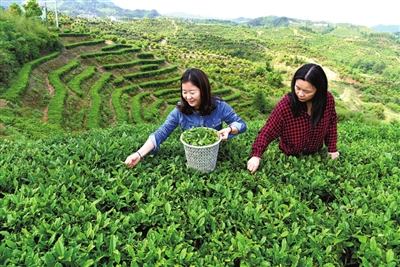 看著青翠欲滴的茶苗,站在壟間的吳海燕露出笑容。