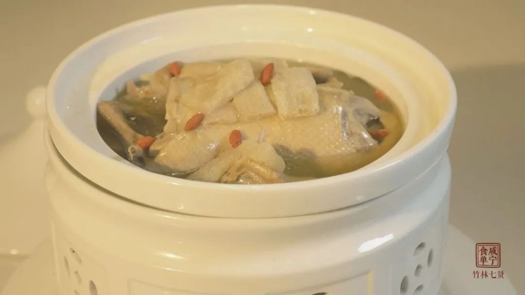 本菜中竹蓀為山珍,鴨為老鴨,高湯炮制,適合老人養(yǎng)生滋補。以山濤歸隱奉老的故事得菜名。