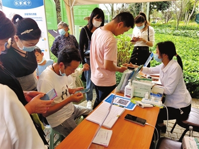 與此同時(shí),在官橋八組田野鄉(xiāng)村公園開(kāi)心農(nóng)場(chǎng)景區(qū)門(mén)前,筆者看到檢票處排起了長(zhǎng)隊(duì),游客們正有序地核銷(xiāo)預(yù)約二維碼、測(cè)溫、登記完后陸續(xù)進(jìn)入景區(qū)。景區(qū)內(nèi)隨處可見(jiàn)拍照合影、嬉戲玩耍的身影,洋溢著一派歡聲笑語(yǔ)的熱鬧景象。