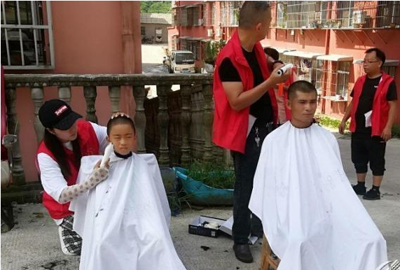 和尚嶺社區(qū)物業(yè)黨員志愿隊為小區(qū)居民理發(fā)