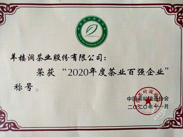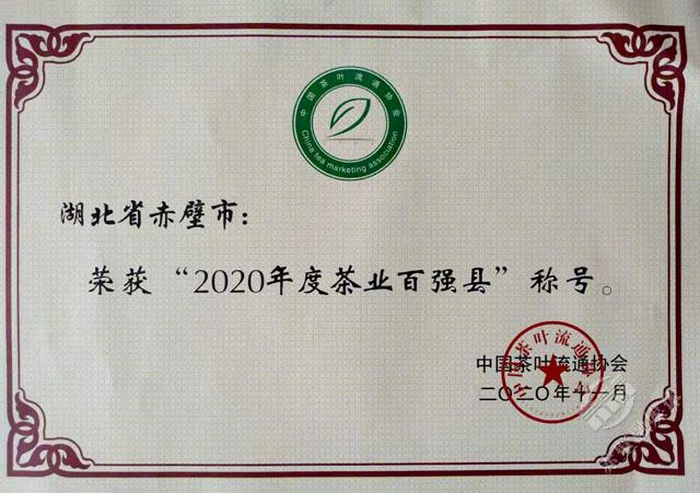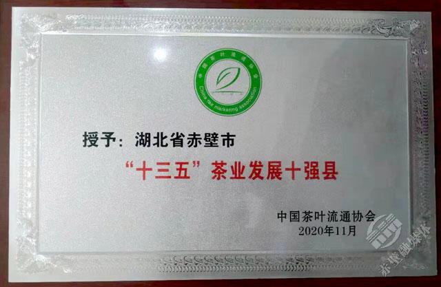 11月18日,第十六屆中國茶業(yè)經(jīng)濟(jì)年會正式發(fā)布了2020中國茶葉行業(yè)調(diào)查的最終結(jié)果,對年度中國茶業(yè)優(yōu)秀企業(yè)、優(yōu)秀縣域進(jìn)行授牌表彰。赤壁市榮獲“十三五百強(qiáng)縣市十強(qiáng)”和“2020年度茶業(yè)百強(qiáng)縣”稱號,其中“十三五百強(qiáng)縣市十強(qiáng)”中赤壁市是湖北省唯一入選的縣市,在“2020年度茶業(yè)百強(qiáng)企業(yè)”評選中,羊樓洞茶業(yè)股份有限公司成為咸寧市唯一入選的企業(yè)。