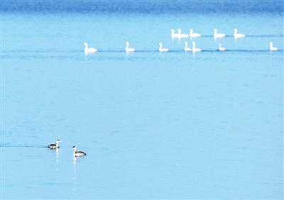 近年來,隨著退垸還湖和禁捕政策的實(shí)施,濕地生態(tài)環(huán)境持續(xù)改善,西涼湖水質(zhì)上升為二類后,為天鵝越冬創(chuàng)造了良好的棲息之地。